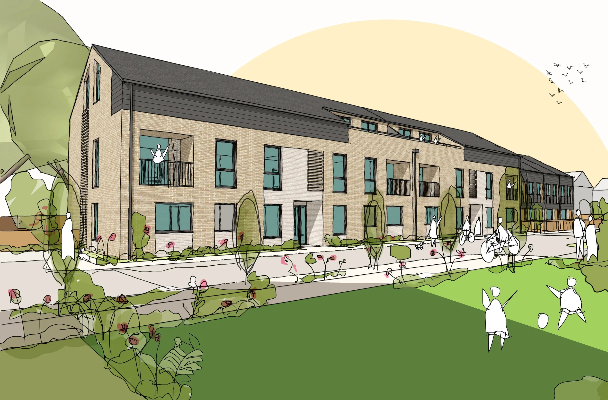 This high quality scheme proposal is in response to the Peterborough Local Plan aspirations and broadens the local residential offer. The types of dwellings are designed to create a mixed-community with new houses proposed for family occupancy and apartments for professional individuals and couples.
